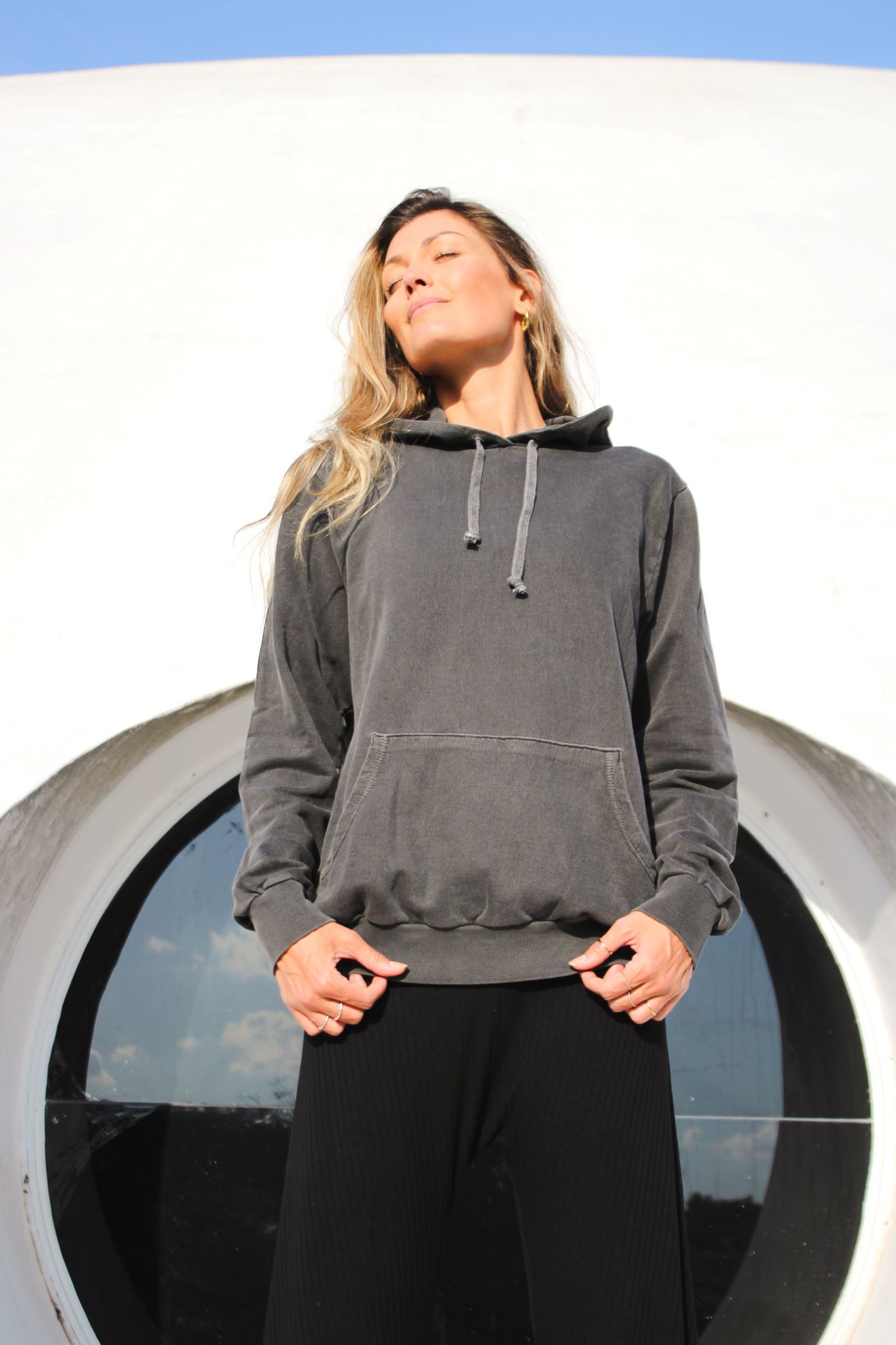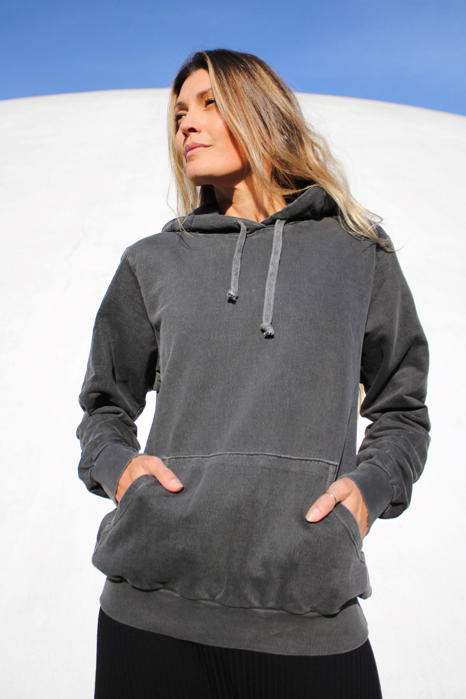 O moletom que une design exclusivo, toque macio e a frase que inspira um viver leve: “Um levar suave no essencial”.